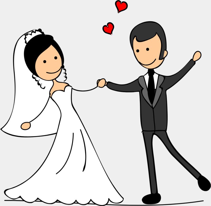 Cartoon Wedding Groom Bride Holding Hands 9